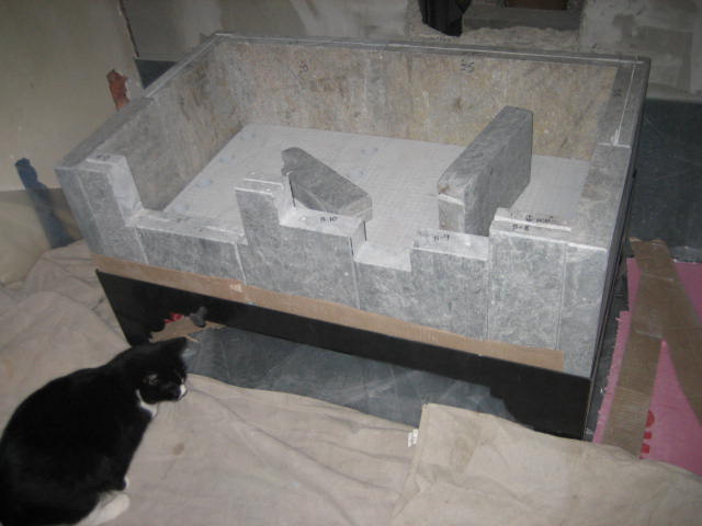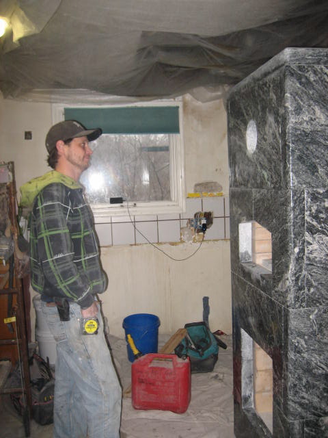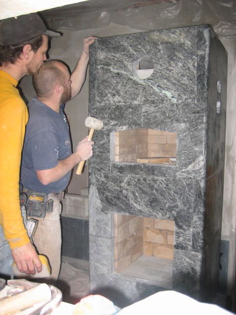 It really is beautiful. I had a steel fabricator replicate the legs the stove sits on and attach that as a pot rack to the ceiling. And then we made legs for the soapstone sink, too. I haven’t plumbed the sink yet – still working on steampunk plumbing.
